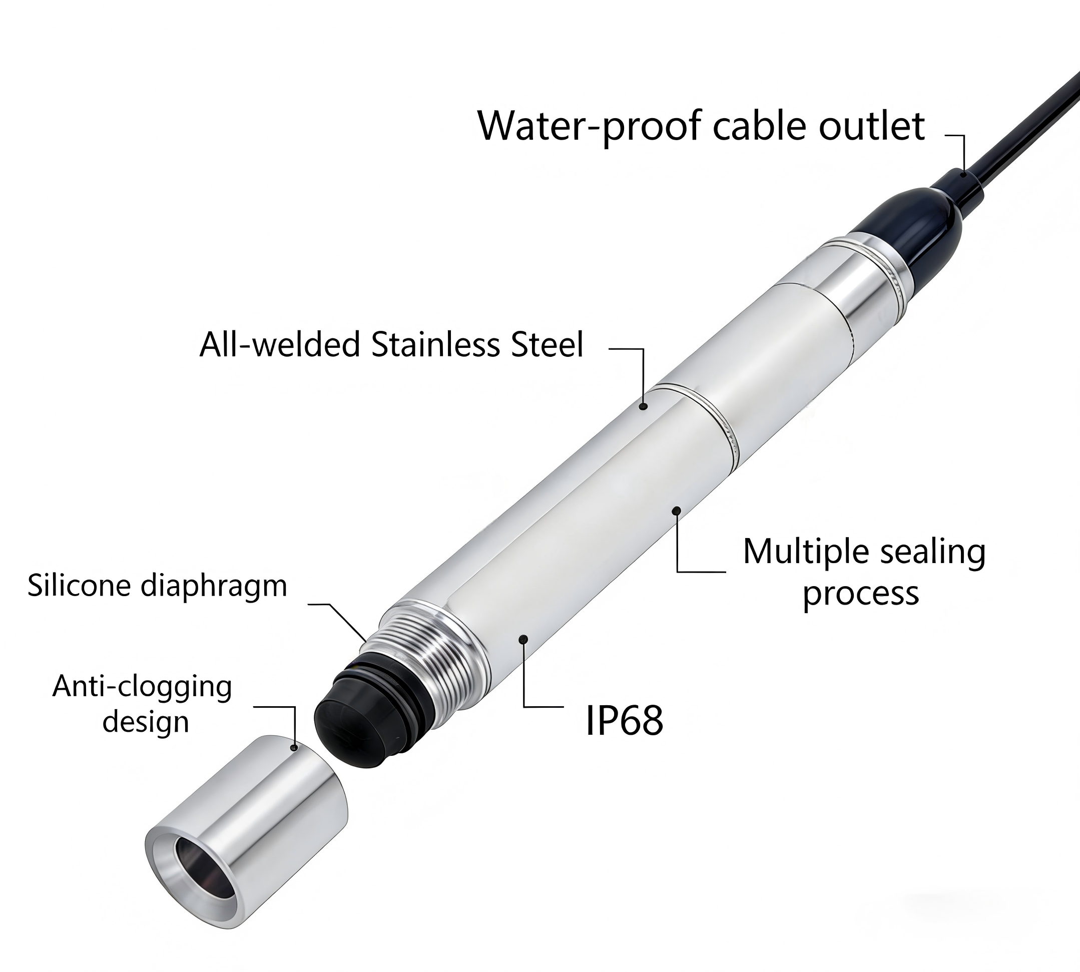 Meio de medição | Vários compatíveis líquidos com aço inoxidável 304 ou 316L |